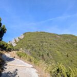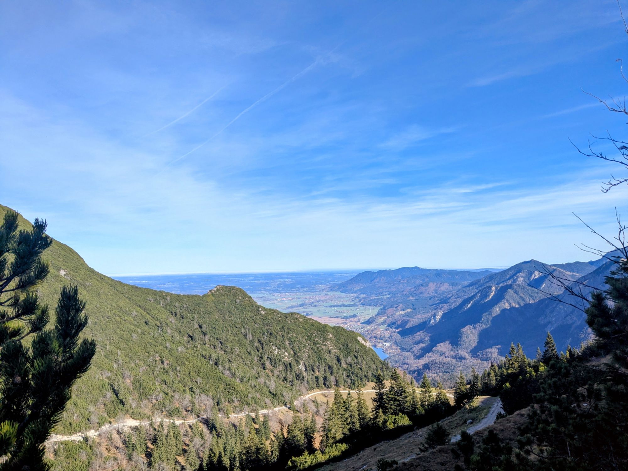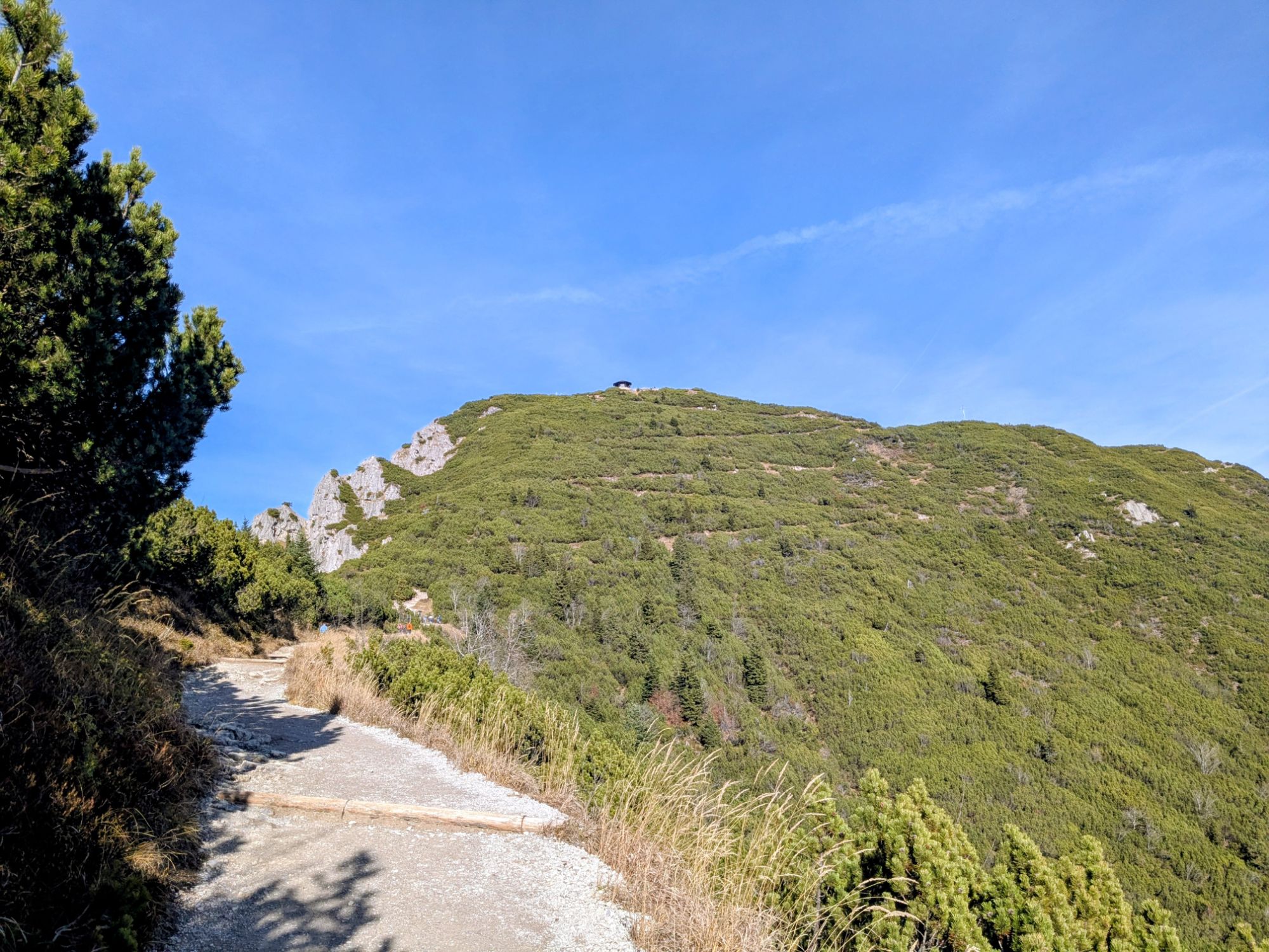 Oben, einmal um den Fahrenberg herum, erblickten wir dann schon die Serpentinen hinauf zum Gipfel de Herzogstands…. puh, bei dem Anblick ließ sich Gisela doch lieber gleich tragen.